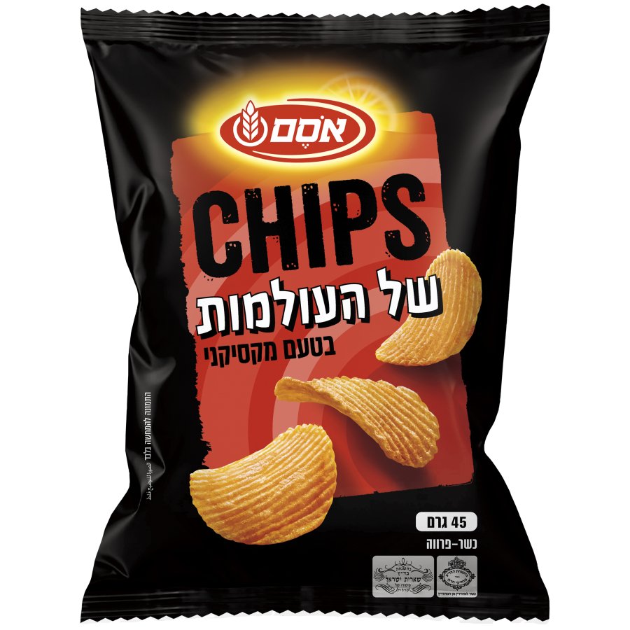 צ'יפס, CHIPS, תפוחי אדמה, תפוחי, אדמה, תפוח , קלאסי, חטיף, חטיף צ'יפס, צ'יפס קלאסי, צ'יפס מקסיקני, צ'יפס בטעם מקסיקני, צ'יפס של העולמות, של העולמות, צ'יפס עולמי, מקסיקני