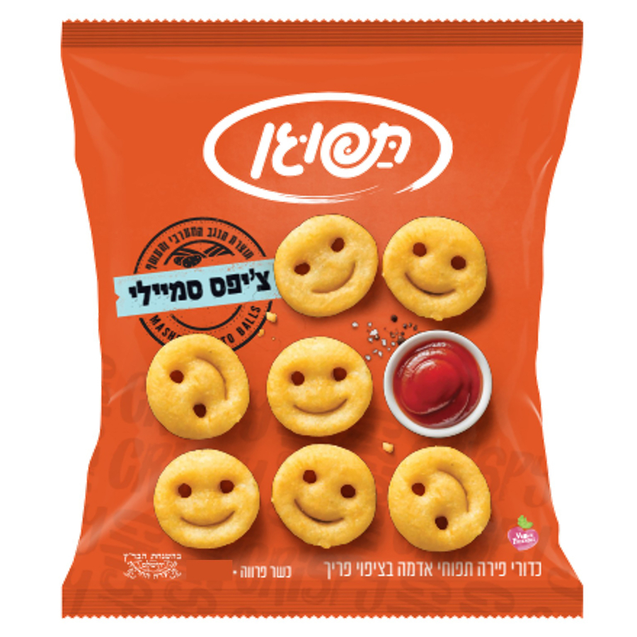 צ'יפס, תפוגן, תפוחי אדמה קפואים, תוספת לארוחה, פחמימות,סמיילי.
