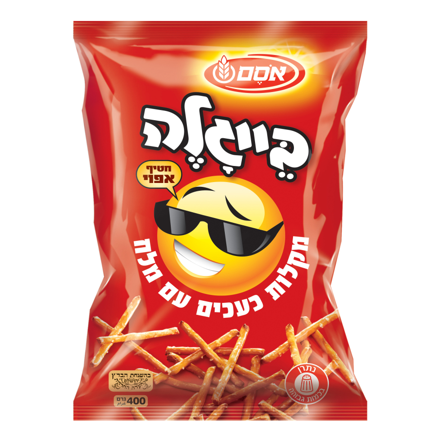 בייגלה מקלות עם מלח: - חטיף אפוי - ללא צבעי מאכל - ללא חומרים משמרים