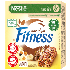 חטיף פיטנס שוקולד בננה מסומן בתוויות אדומות מכיוון שהוא מכיל 23.8 גרם סוכר ו-5 גרם שומן רווי ב-100 גרם. מנה של חטיף פיטנס שוקולד בננה היא יחידה אחת (23.5 גרם), המכילה 5.6 גרם סוכר (כ-1.5 כפיות סוכר) ו-1.2 גרם שומן רווי.